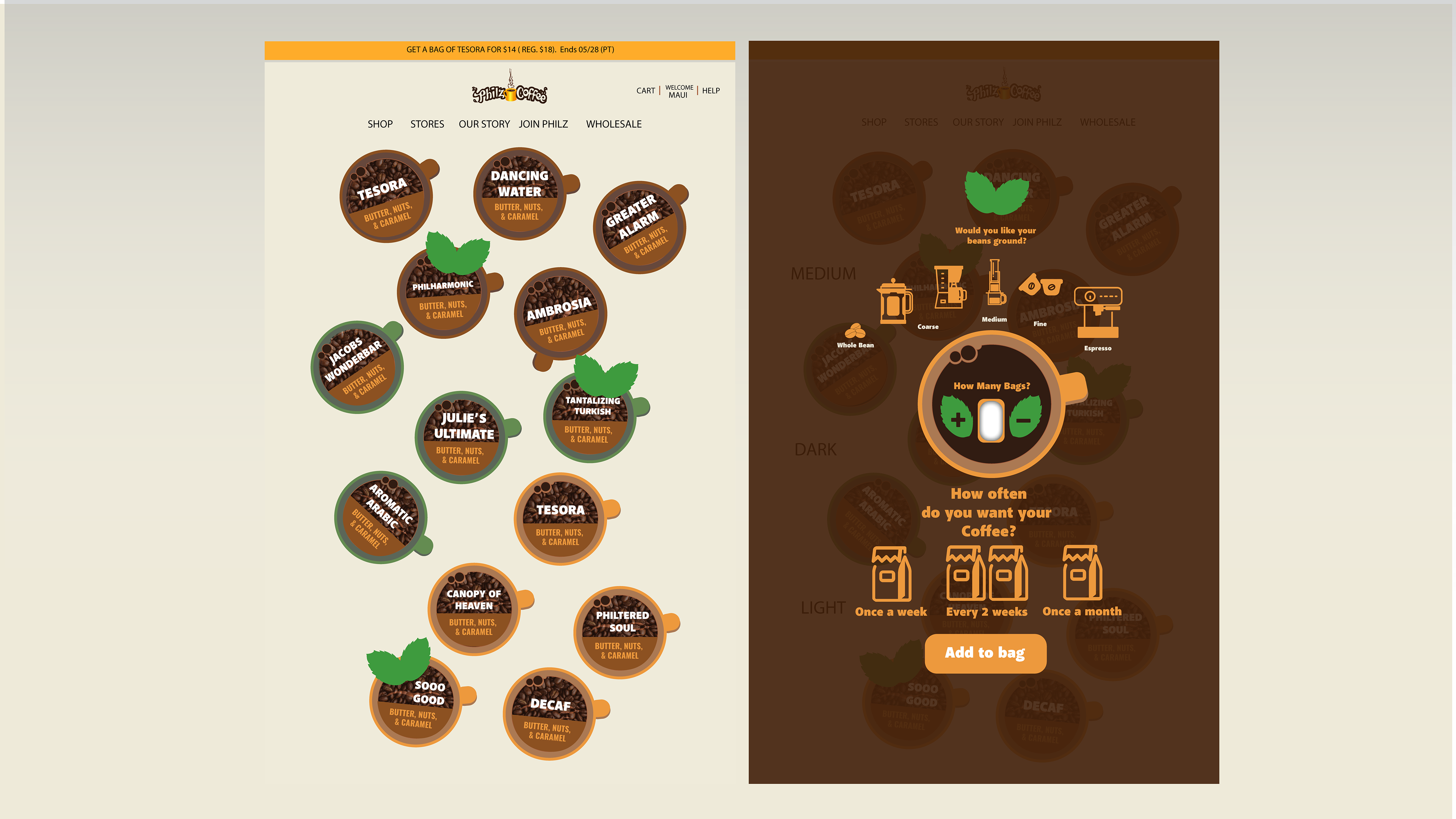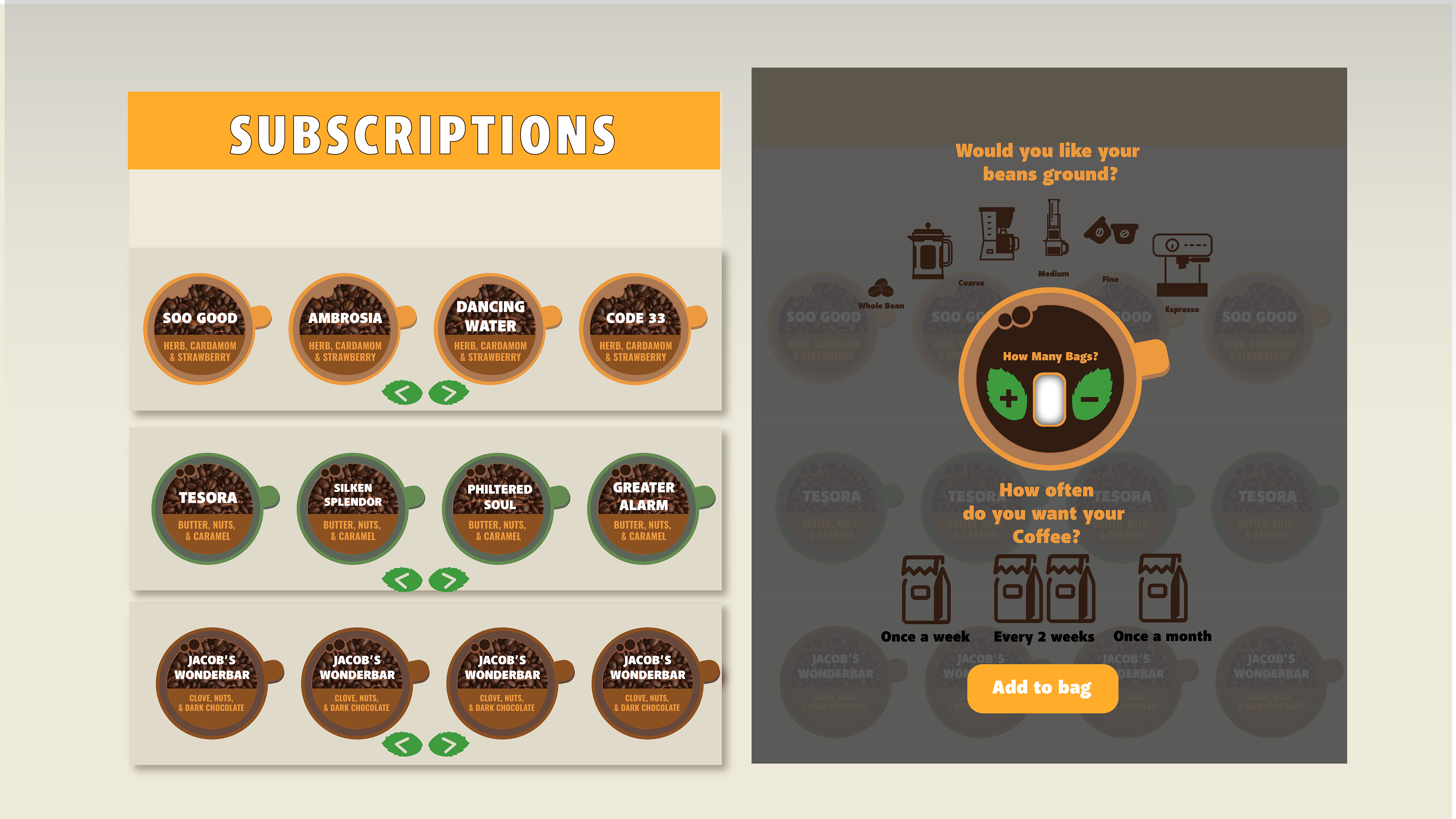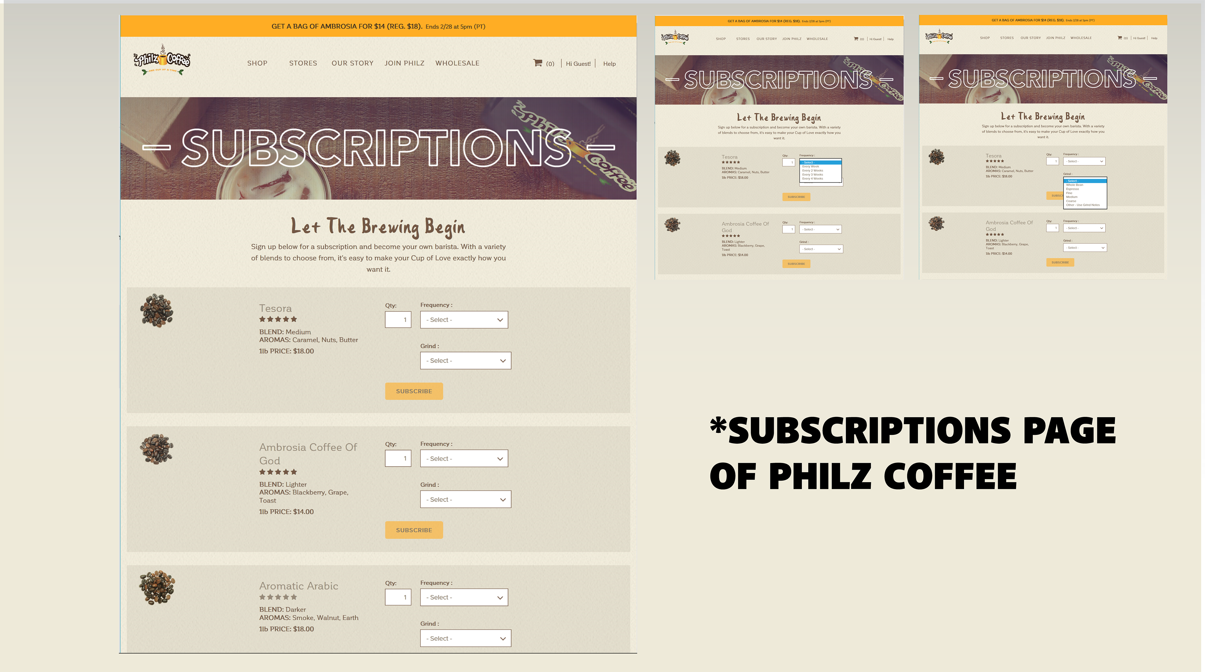 A User Interface Exploration on more efficient ways to accrue more orders on the Philz Coffee subscription page.